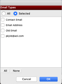 Click the down arrow next to Email Address Types to specify all email types or select a particular email type or types to export.