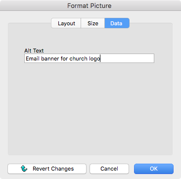 Click the graphic once to highlight it. Click the Format button on the side of the notice window and choose Picture from the drop list. This opens the Format Picture window. You can also double-click the graphic to open this window.