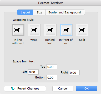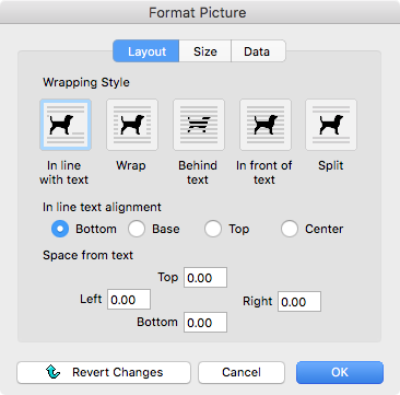 Choose the Wrapping Style for your graphic by clicking on the appropriate icon.