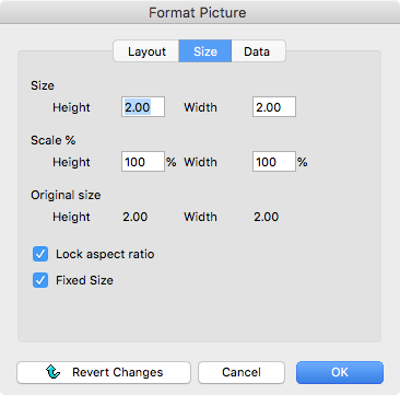 Toggling the checkbox next to Fixed size will reset the dimensions to the graphic's original size.