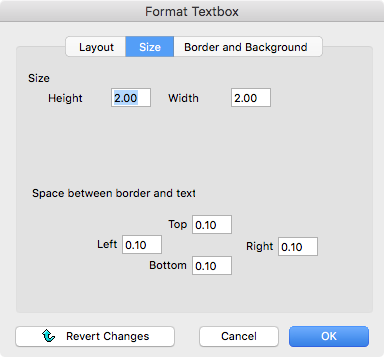 Set the size of the text box in the top half of this tab. You can also manually change the size of a text box by clicking once on the edges of the text box, and then dragging either the little now-visible squares, or dragging the corners of the text box.