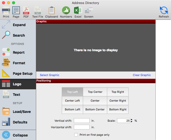 The Logo tab allows you to add a Logo to your report. This is a great feature to make them more personalized. You can add as many graphics as you like to the database, including your Church Logo, VBS Logos, Youth Group and Bible Study Logos, and more! From this tab, you can also determine the scale of the graphic, and where you want it to be placed on the page. You can also specify whether you want it on every page, or just the first page.