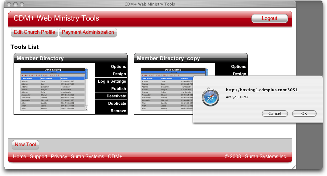 To remove a tool from your Tools List, click Remove on the bottom of the list to the right of the tool. A prompt will ask you, "Are you sure?" Click OK to remove the tool. Click Cancel to return to the Tools List without removing the tool.