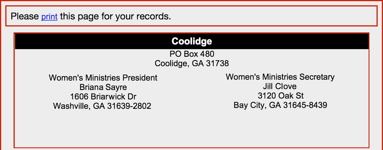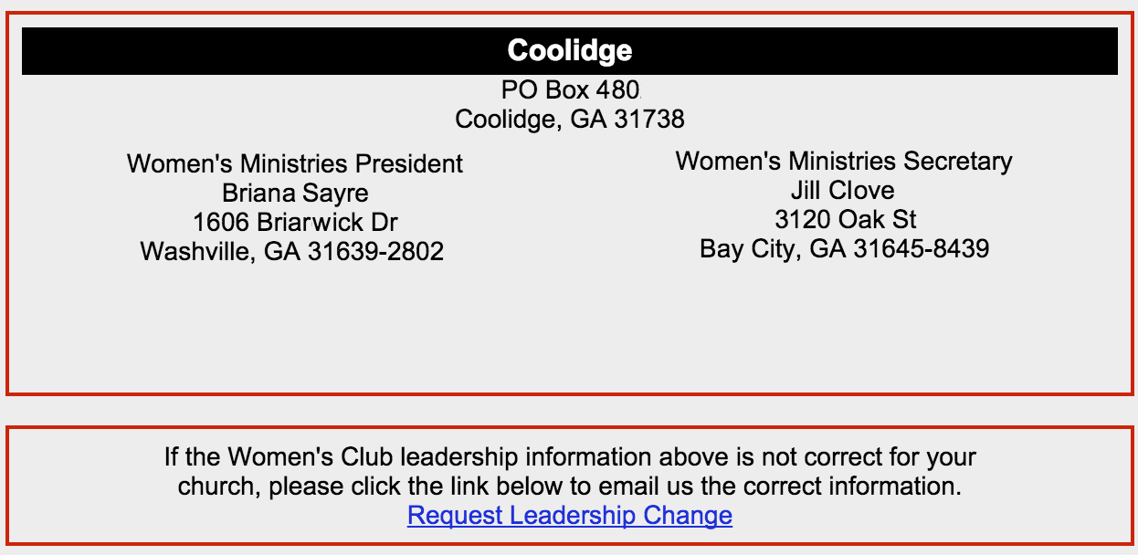 At the top of the page, you will see information about the women's leadership of this church.