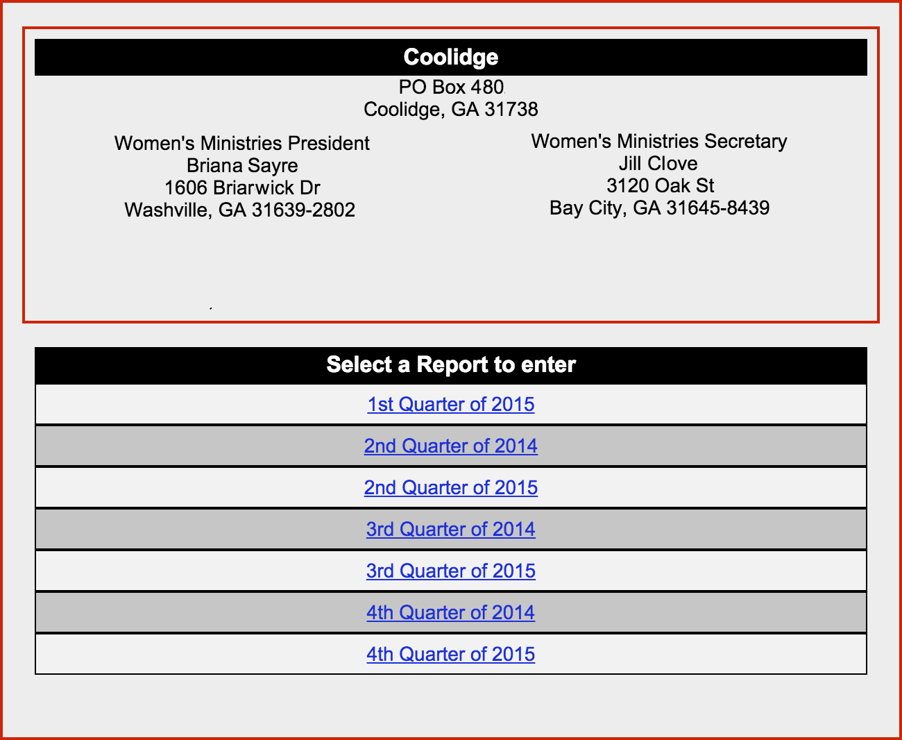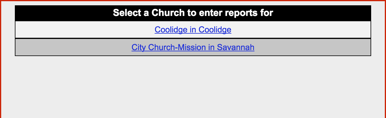 Click on the link for the church for which you want to submit a report.
