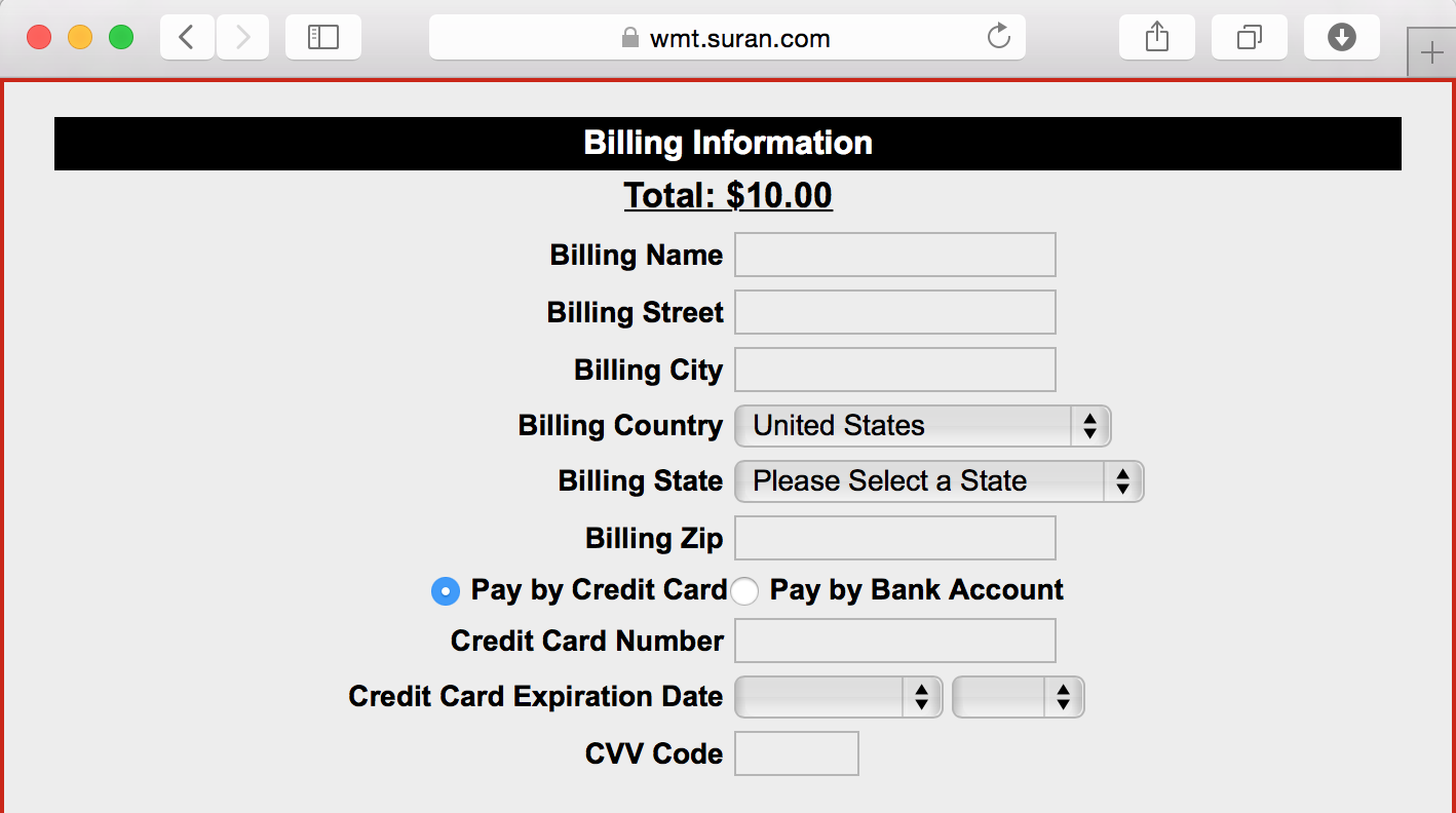 If you have a financial gift to be made with this report, you must complete the fields in the Billing Information section.